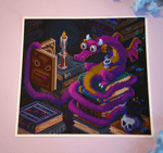 Glossy print with holographic rainbow shards that shine when light reflects on it.